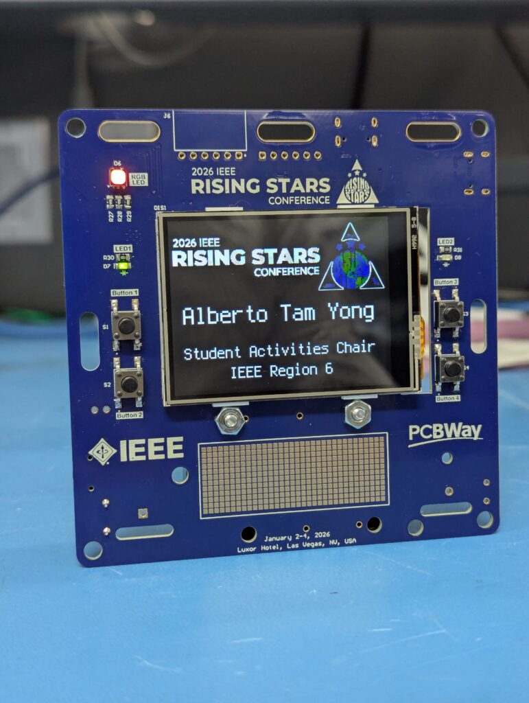 The conference badge project started from the first prototype featured in 2025. Thanks to the sponsorship commitment from PCBWay and the conference’s priority to offer attendees a unique and engaging experience, the 2026 IEEE Rising Stars Conference featured a conference badge project.