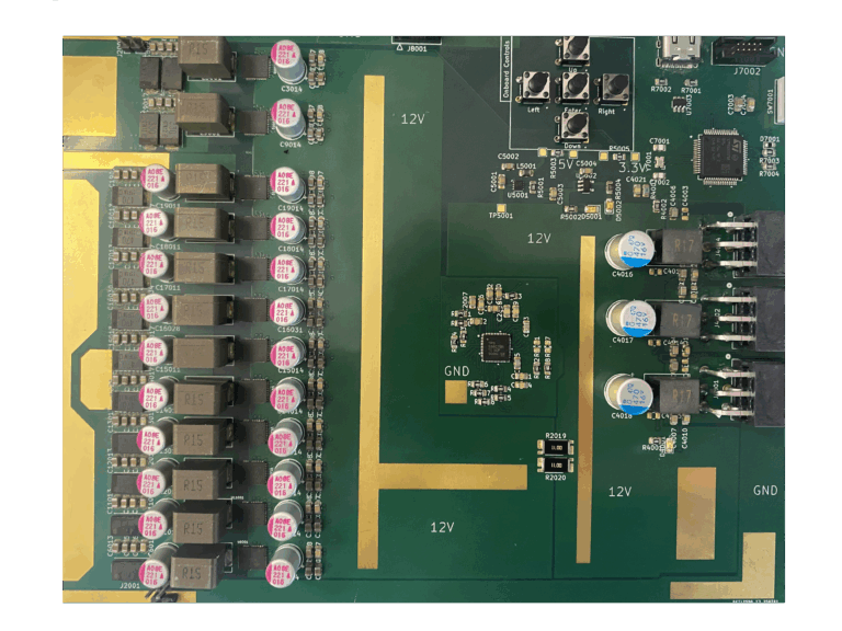 This project replace the onboard Voltage Regulation Module (VRM) on any consumer grade Graphic Processing Unity (GPU) for the purpose of extreme overclocking. The device solders onto the power plane under the inductors; it can supply up 450A on the core output channel and 100A on the memory output channel.