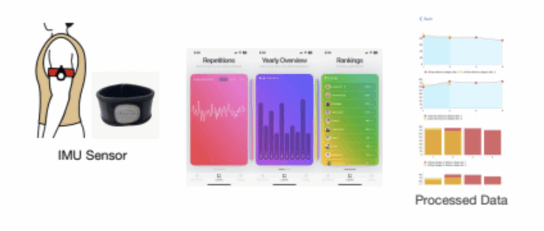 We aim to develop a comprehensive strength training monitoring system using a wearable sensor that provides real-time auditory and visual feedback on user repetitions, while also incorporating a point-based reward system to gamify exercise. The system uses an inertial measurement unit (IMU) mounted on the upper arm to capture accelerometer and gyroscope data. The app processes this data to measure key performance metrics such as range of motion (ROM), velocity, and duration. It conveys this information through auditory feedback played via in-ear monitors (IEMs), and visual feedback presented as charts.into a storm; a breath of calm can sprout roots and open light; a single word – “fish,” “home,” “lost”, can seed a visual metaphor that unfolds immediately. Crucially, the experience is open-ended: visitors control its length and depth. They may speak a single sentence, sit in silence, or carry on for as long as they wish while the system continuously composes a coherent, evolving narrative
