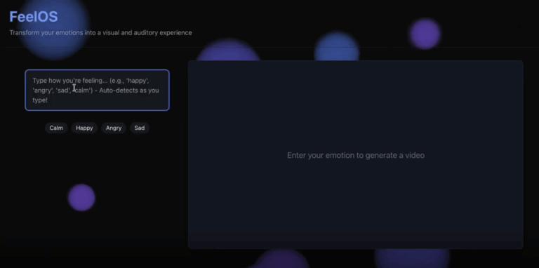 Feel-OS transforms emotional reflection into a live, participatory art work. A visitor wears a lightweight EEG headset, speaks into a microphone, and watches a generative soundscape and visual environment respond in real time. Language and brain signals jointly drive dynamic imagery, music, and text: a moment of anxiety might swell into a storm; a breath of calm can sprout roots and open light; a single word – “fish,” “home,” “lost”, can seed a visual metaphor that unfolds immediately. Crucially, the experience is open-ended: visitors control its length and depth. They may speak a single sentence, sit in silence, or carry on for as long as they wish while the system continuously composes a coherent, evolving narrative